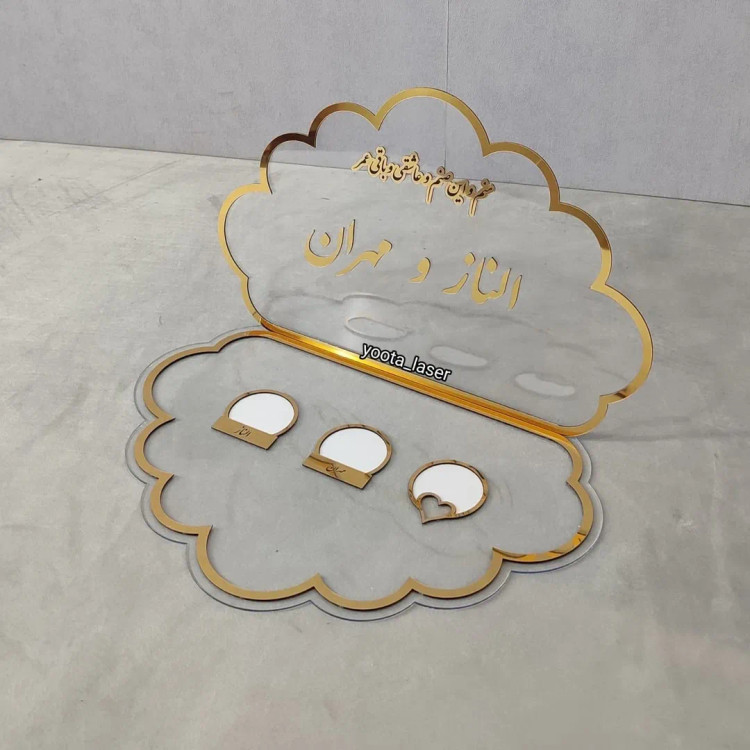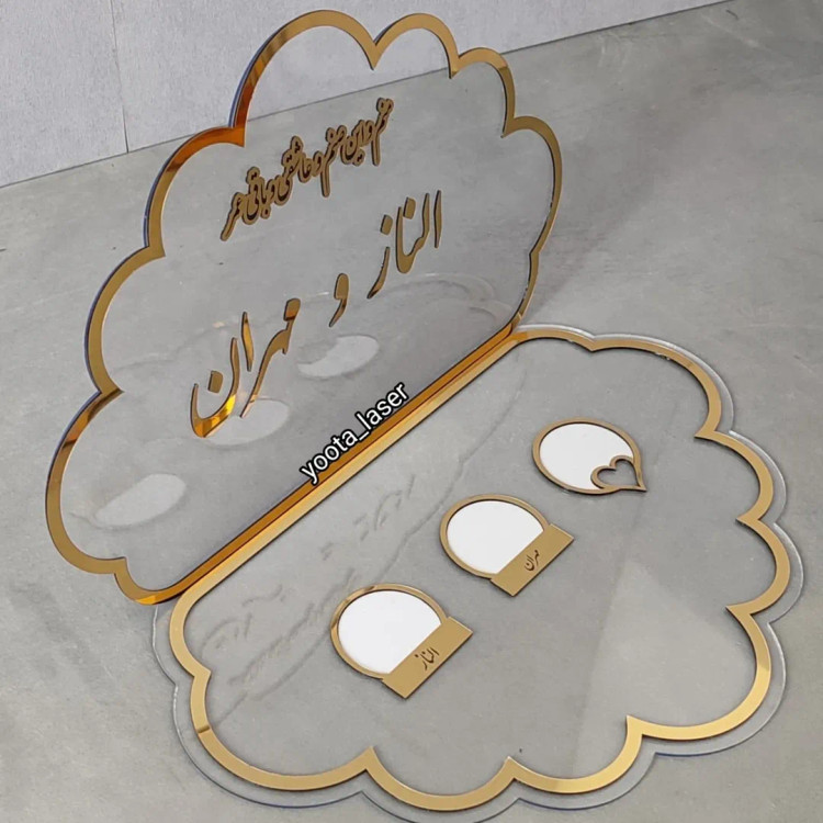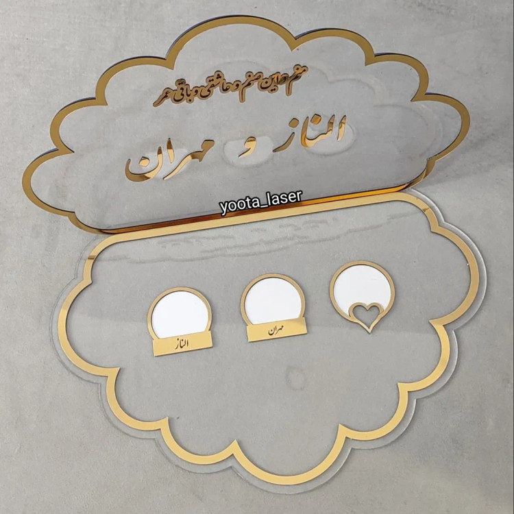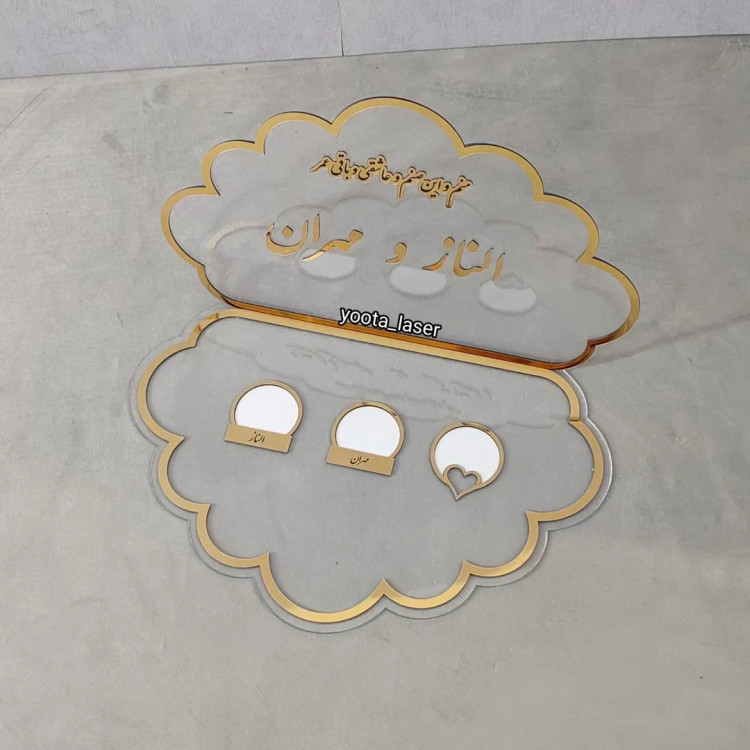 لطفا اسامی عروس و داماد و متن مورد نظر را هنگام ثبت سفارش در توضیحات بنویسید. تماس ضروری: 09019934440 پیج اینستاگرام yoota_laser