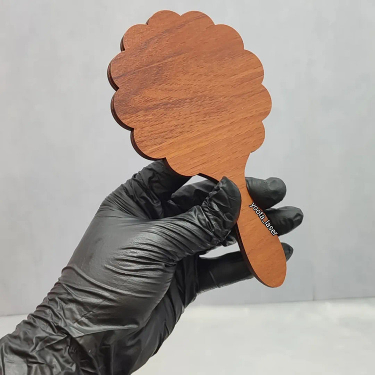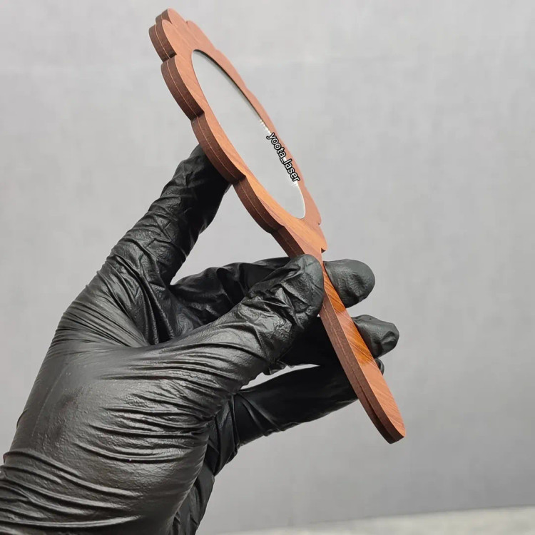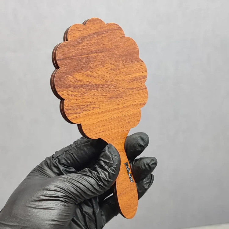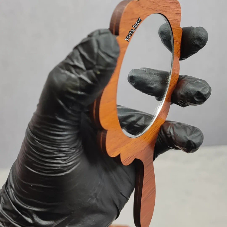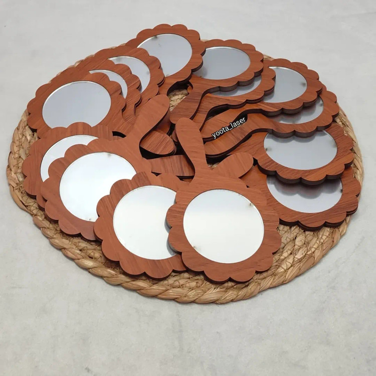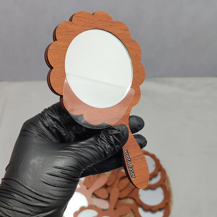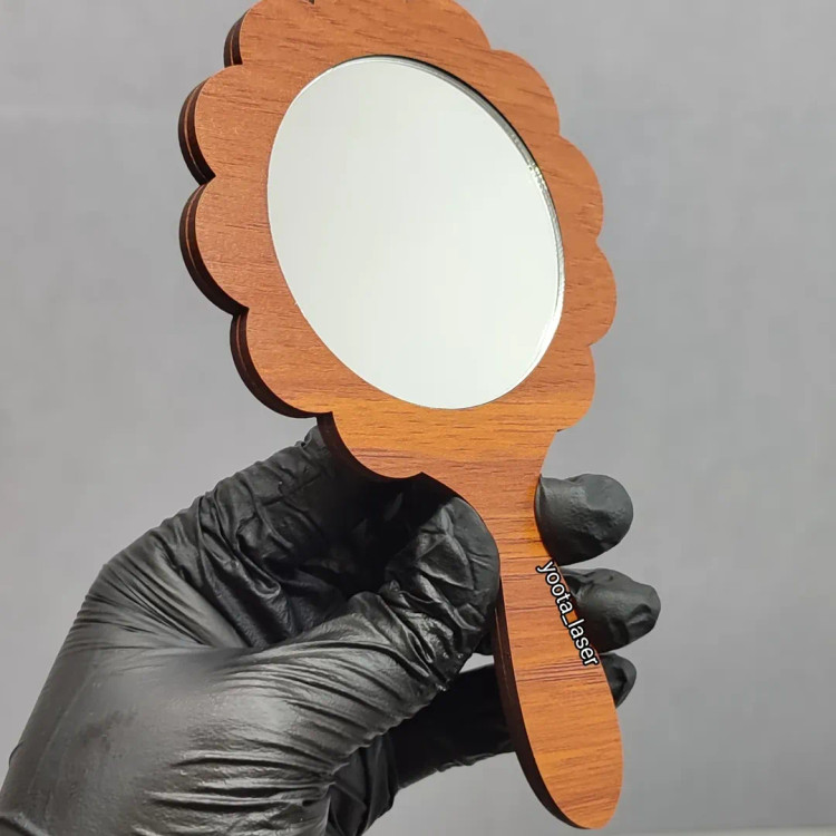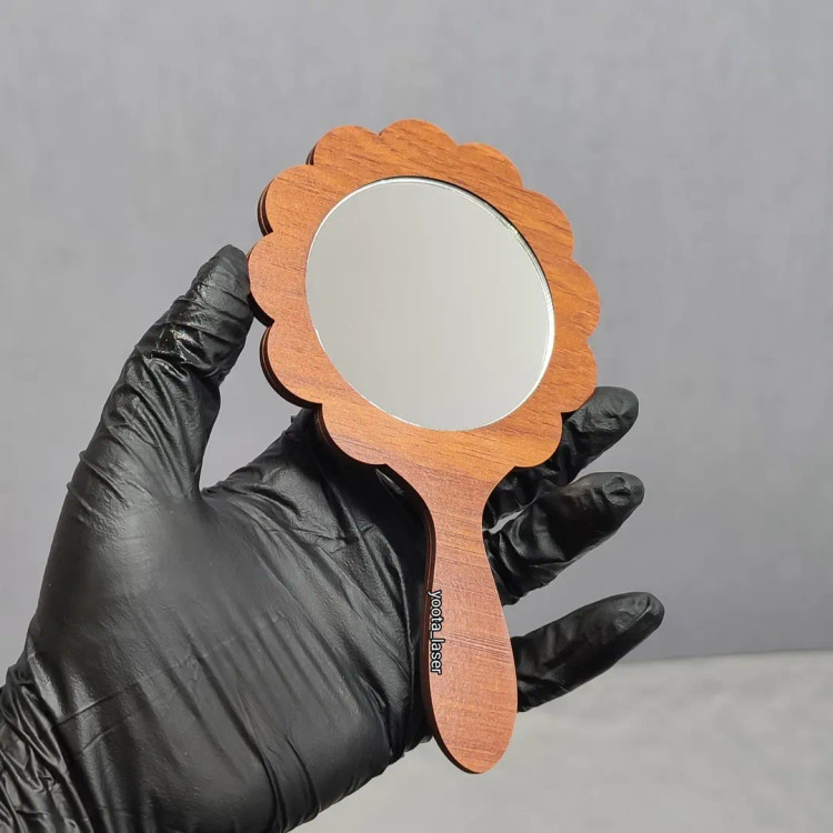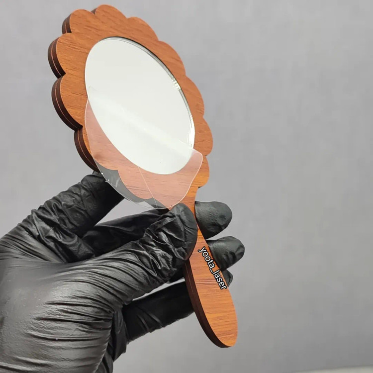 گیفت آینه دستی سایز حدود 13 تا ۱۴ سانتی دسته چوبی mdf + آینه پلکسی پشت چسبدار شده