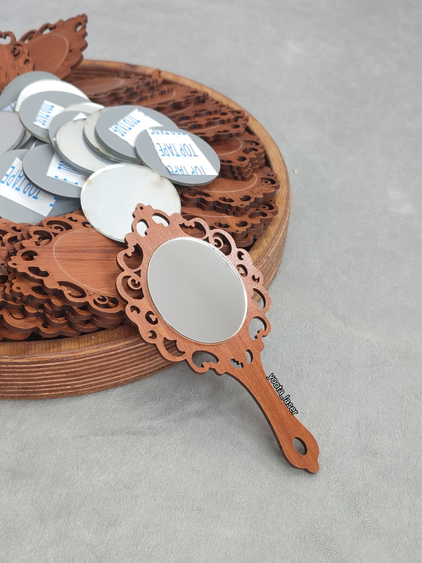 *توجه* : این محصول به صورت مونتاژ نشده ارسال می شود. یعنی چه؟ برای راحتی کار مشتری آینه پشت چسبدار شده و برای چسباندن آینه کافی است روکش چسب را جدا کرده و آینه را روی دسته بچسباند.. مشتری محترم باید دسته آینه ها را با پارچه ای حوله ای که با شیشه پاک کن مرطوب شده تمیز کند تا رد دوده حاصل از برش و سیاهی از برش روی سطح دسته و پشت دسته تمیز و درخشنده شود. خود مشتری یا گیفت کارها، کارهای مونتاژ را انجام می دهند. برای راهنمایی در مورد مونتاژ محصول به پیج اینستاگرام yoota_laser سر بزنید. این کار معمولا برای مقرون بصرفه تر شدن هزینه محصول در نظر گرفته شده است. اگر یصورت مونتاژ شده کامل توسط ما می خواهید انجام شود در واتساپ یک پیام بدهید و اعلام کنید .