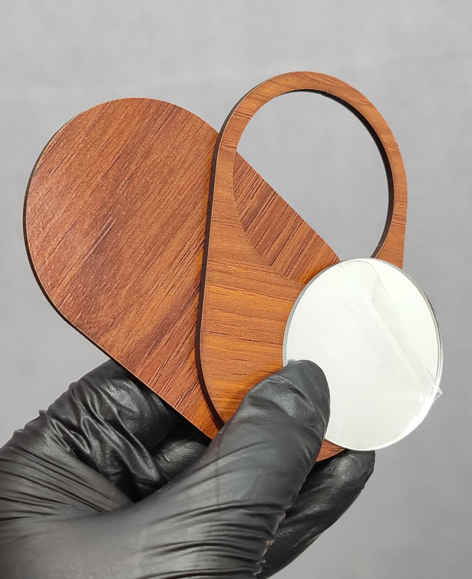 *توجه* : این محصول به صورت مونتاژ نشده ارسال می شود. یعنی چه؟ برای راحتی کار مشتری آینه پشت چسبدار شده و برای چسباندن آینه کافی است روکش چسب را جدا کرده و آینه را روی دسته بچسباند.. مشتری محترم باید دسته آینه ها را با پارچه ای حوله ای که با شیشه پاک کن مرطوب شده تمیز کند تا رد دوده حاصل از برش و سیاهی از برش روی سطح دسته و پشت دسته تمیز و درخشنده شود و در ادامه دو قسمت آینه با چسب به هم چسبیده شوند. خود مشتری یا گیفت کارها، کارهای مونتاژ را انجام می دهند. برای راهنمایی در مورد مونتاژ محصول به پیج اینستاگرام yoota_laser سر بزنید. این کار معمولا برای مقرون بصرفه تر شدن هزینه محصول در نظر گرفته شده است. اگر یصورت مونتاژ شده کامل توسط ما می خواهید انجام شود در واتساپ یک پیام بدهید و اعلام کنید .