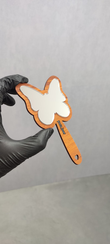 گیفت آینه دستی سایز حدود 13 تا ۱۴ سانتی دسته چوبی mdf