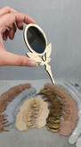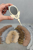 گیفت آینه دستی سایز حدود 13 تا ۱۴ سانتی دسته چوبی mdf + آینه پلکسی پشت چسبدار شده
